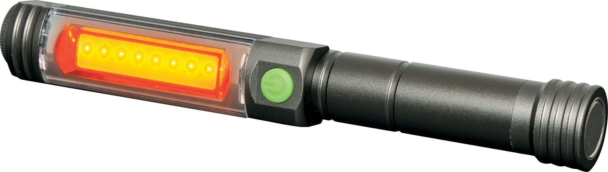 Lighting Modes: Penlight, wide flood (2 brightness levels), red SOS